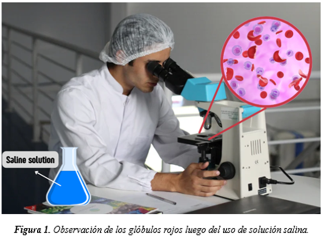 La historia del suero fisiológico o solución salina es un cúmulo de ensayos y errores que data del año de 1826, mientras Europa era invadida por el cólera. En 1831, William Brooke O’Shaughnessy propuso un método para tratar esta enfermedad con soluciones de sales y oxígeno, esto después de que analizó la sangre de los pacientes afectados por cólera. Del mismo modo, realizó pruebas en perros, inyectándoles agua tibia con una variedad de sales en sus venas. Posteriormente, en 1832 Thomas Latta replicó los experimentos de O’Shaughnessy en humanos, observando casos con resultados trágicos, atribuyendo esto a la mala aplicación de la solución. Luego de los hallazgos, Thomas alteró la solución salina original, entendiendo que su objetivo era obtener una solución con la concentración de sales similar a la sangre, sin embargo, el éxito de esta solución fue moderada, dado que no eran estériles. Más de cincuenta años después, en 1896, Hamburger preparó la solución salina 0.9% (9 g de cloruro de sodio por litro de agua), que conocemos actualmente, mientras investigaba la hemólisis (ruptura) de los glóbulos rojos; la Figura 1 ejemplifica el uso de solución salina para la observación de glóbulos rojos.(Awad et al., 2008; Masson, 1971)
